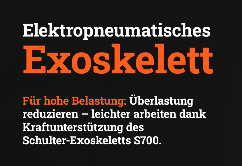 Das akkubetriebene Exoskelett exoIQ S700 ist eine innovative, ergonomische Unterstützungslösung, die pro Arm bis zu 5 kg zusätzliche Kraft bereitstellt.