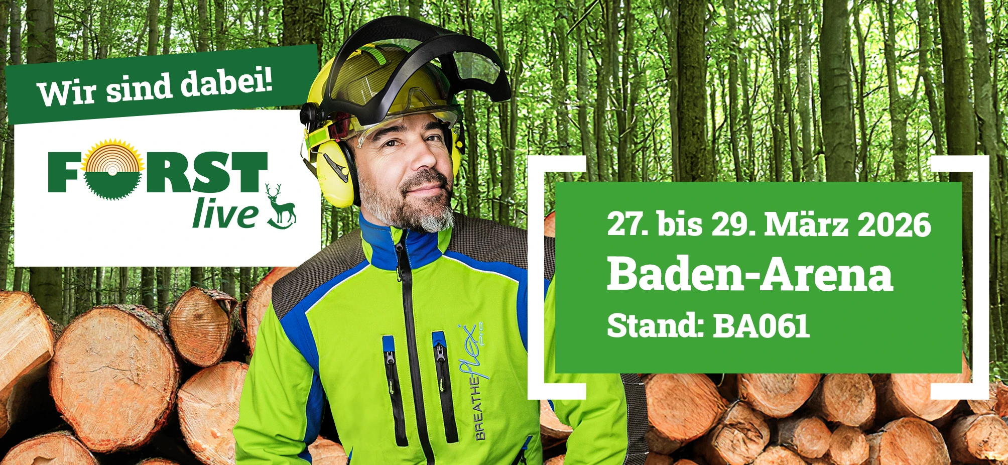 Besuchen Sie uns auf der Forst Live 2026 vom 27. bis 29. März 2026 in der Baden Arena in Offenburg. Sie finden uns am Stand BA061.